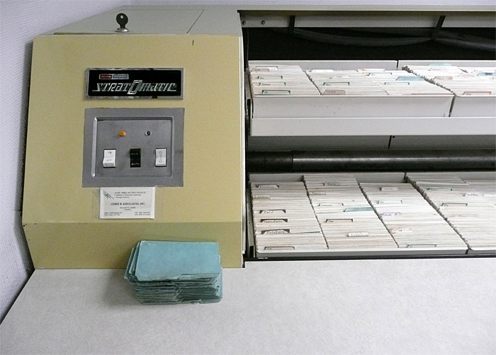 Looking for my buying history in the Acme Visible Strat-O-Matic. That’s Jimmy Smits’ photo in the background. I told you this place was exclusive!