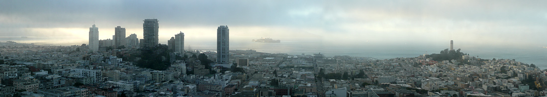 San Francisco and the bay looking north, taken at the wedding reception from the top of the Fairmont Hotel. View larger image.