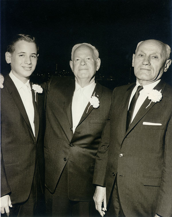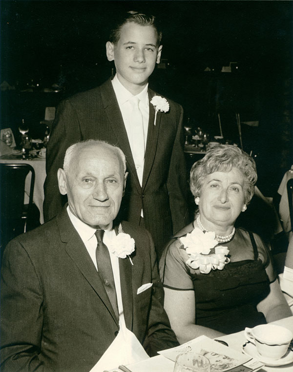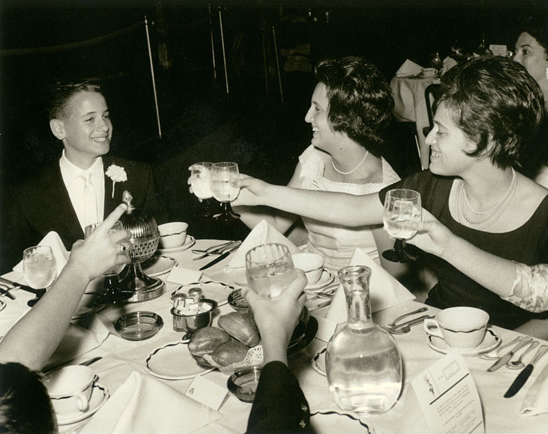 After the ceremony we had the traditional temple reception of sandwiches and Manischewitz wine (grape juice for us newly anointed “men”). Often there is also a larger reception that takes place at a hotel or restaurant that night or the next day. Dad and Mom decided a small version of this celebration with close relatives and some of my friends worked best for them. But, they decided to have it at the Cocoanut Grove in Hollywood.